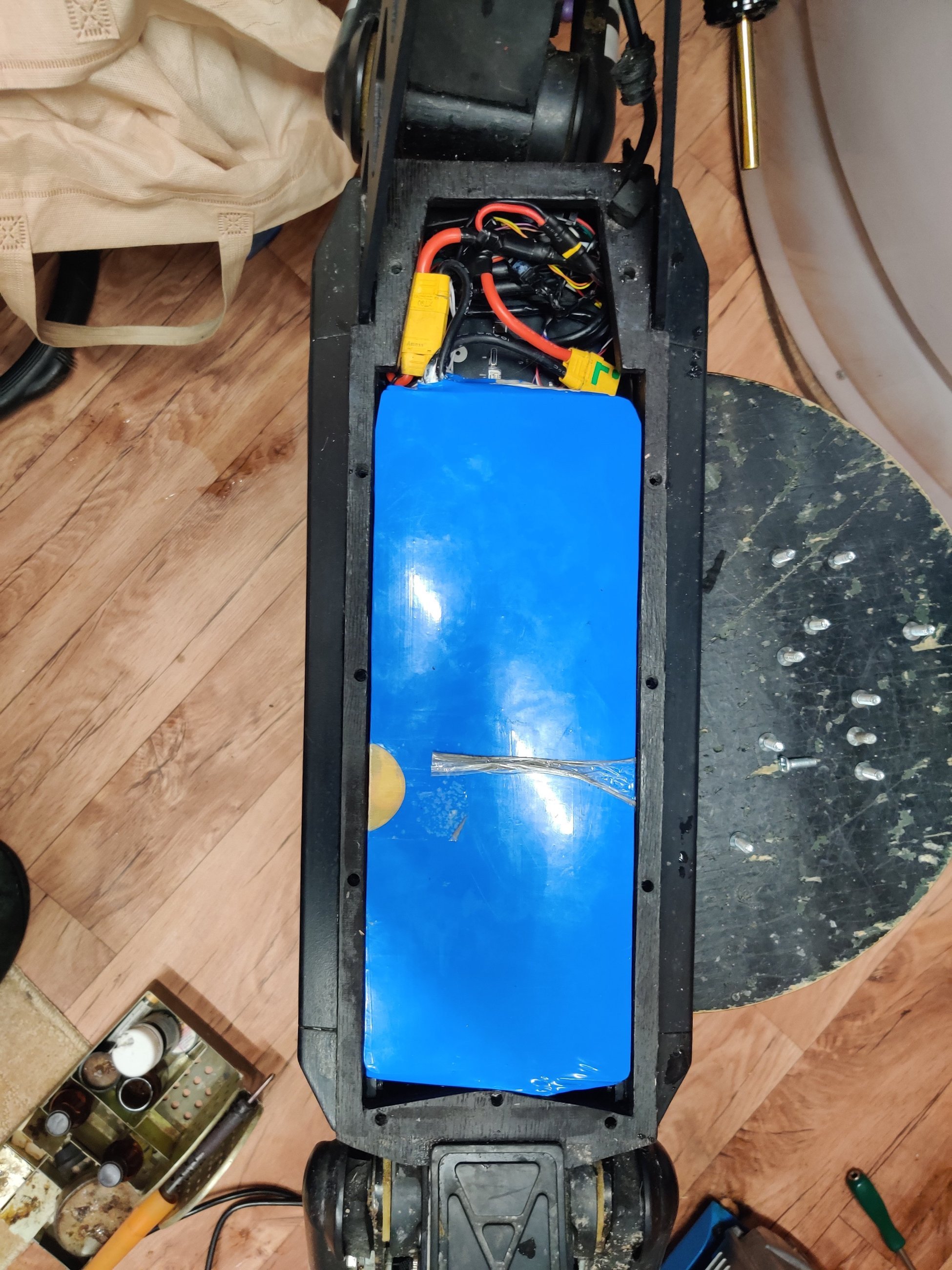 После сборки аккумулятора 17с8п из элементов 18650 стоймя понадобилась проставка в 10мм. Вырезал из фанеры и покрасил в черный.