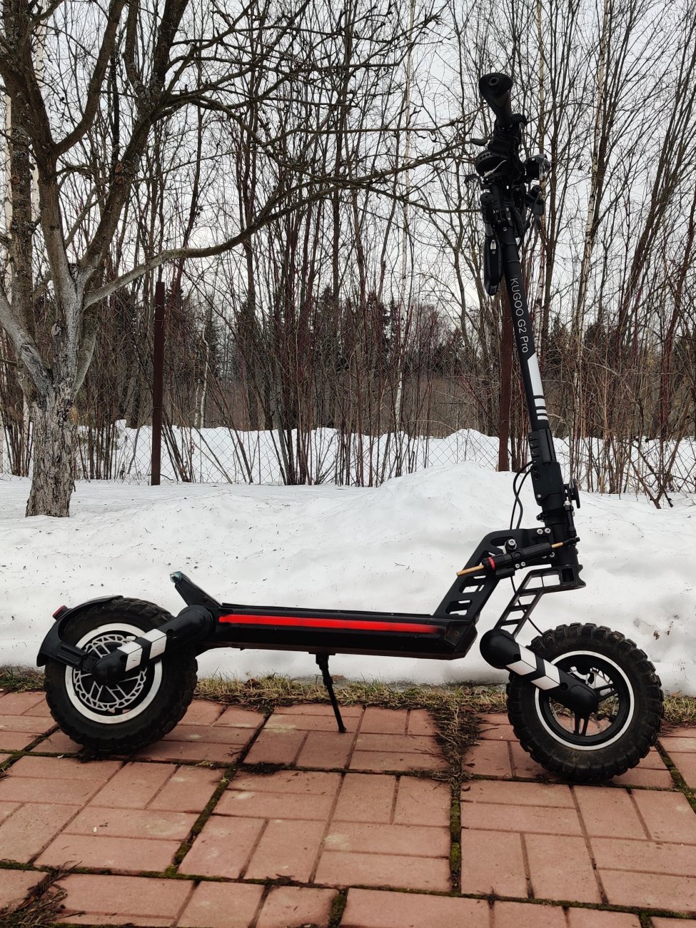 Каким то непонятным убразом погнулась подножка г2 во время перевозки самоката в машине. Загнуло можно сказать буквой "зю". Снялась подножка легко, без проблем открутил два болта крепящих подножку к деке...