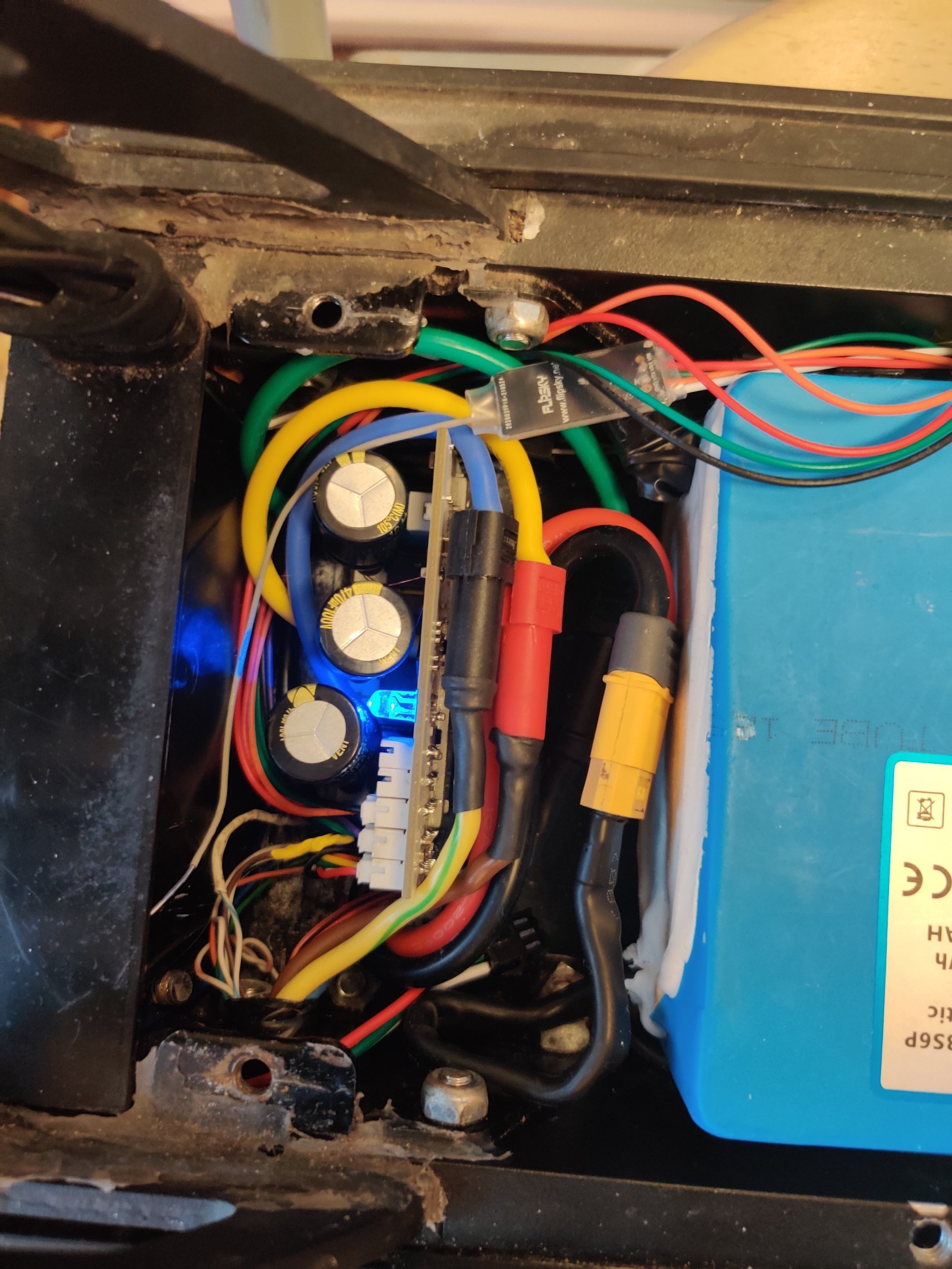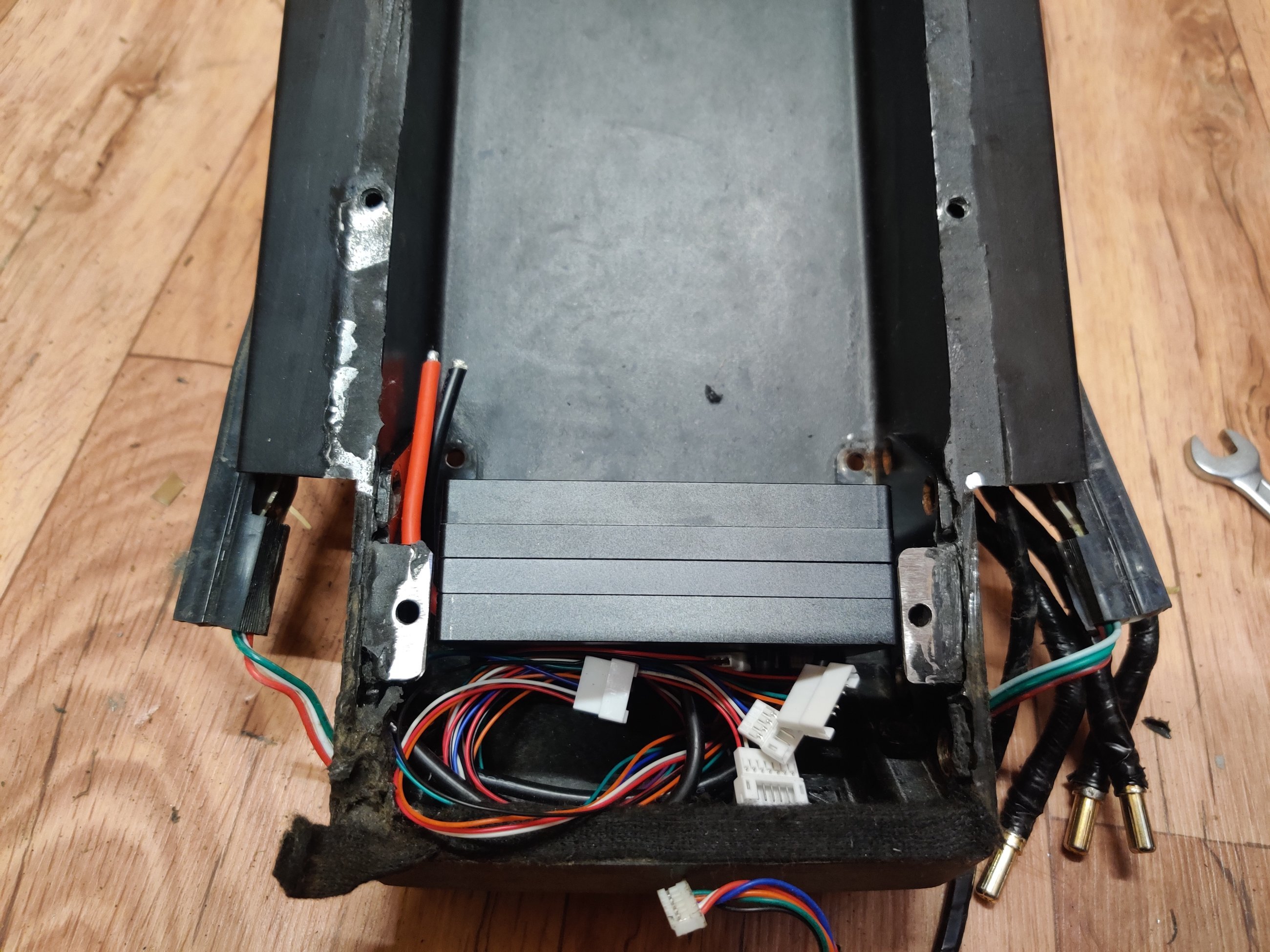 Контроллеры Vesc 75100 Alu имеют удачные габариты для установки в деку g2 pro при условии некоторых доработок. После небольшой обточки укрепляющей железки крепления гуся к деке контроллеры стало возможным размещать...