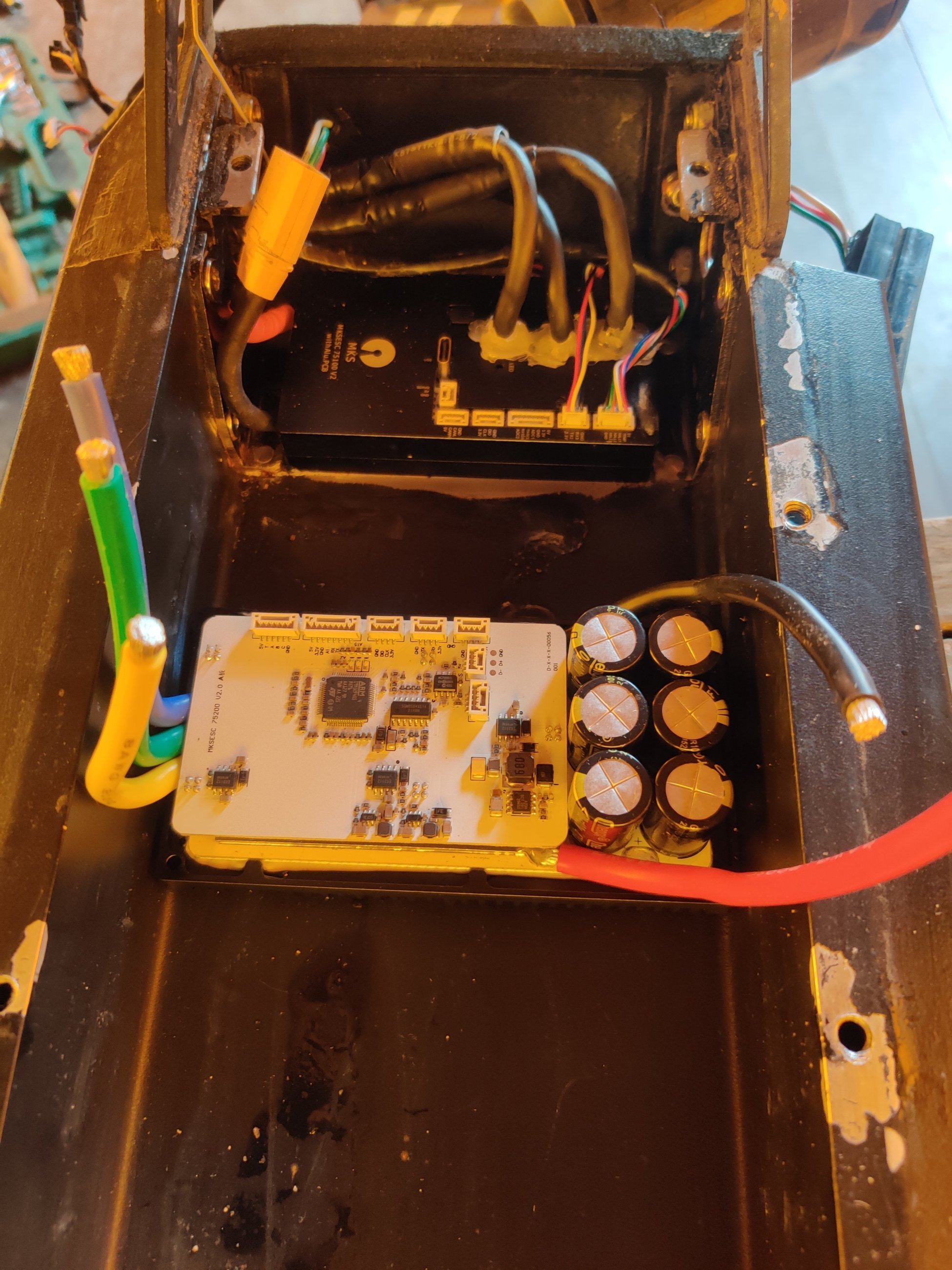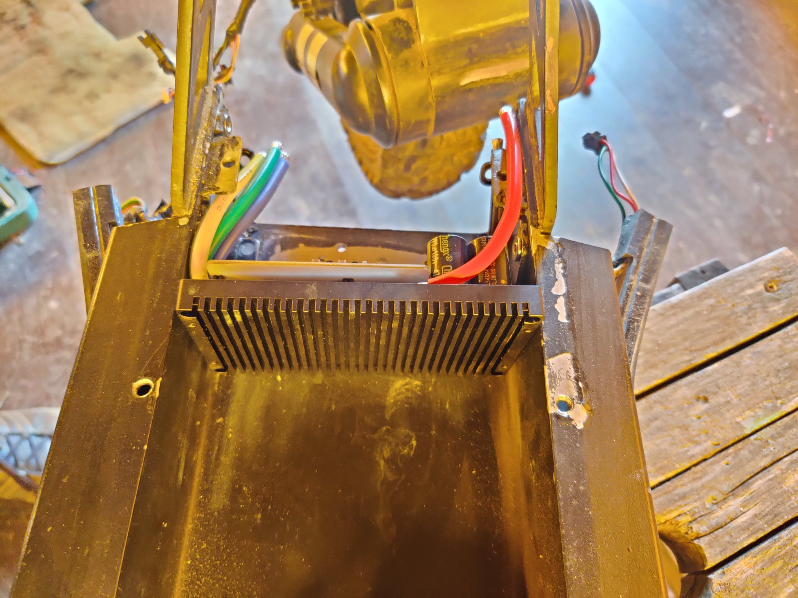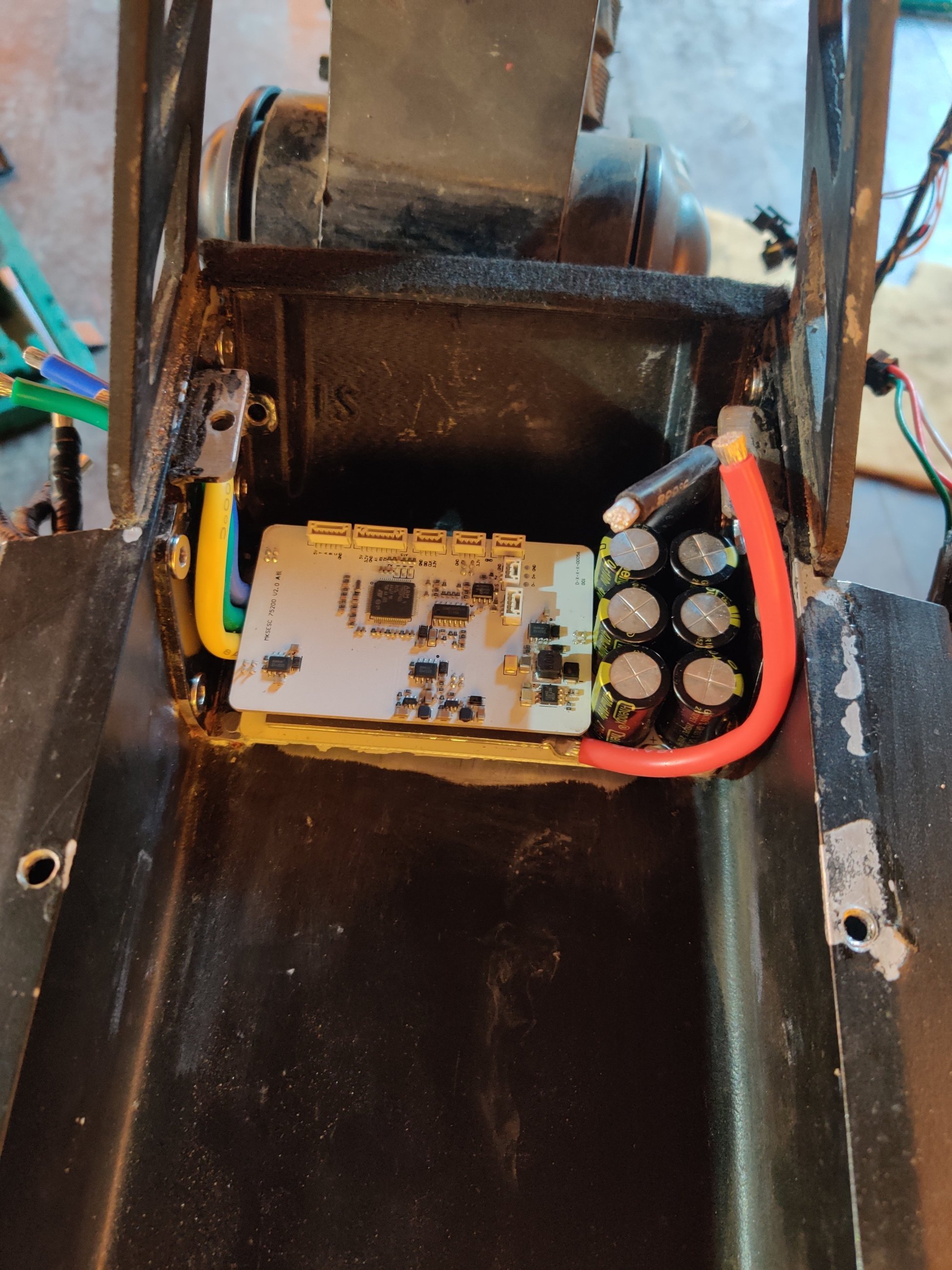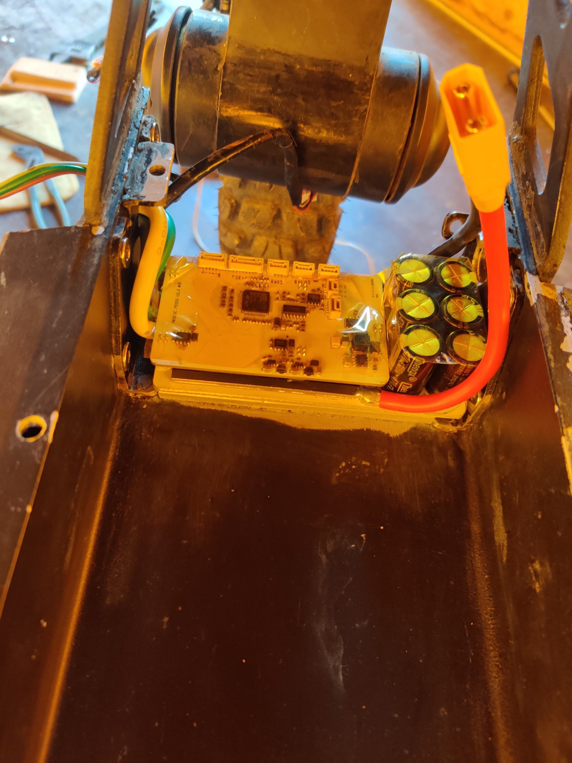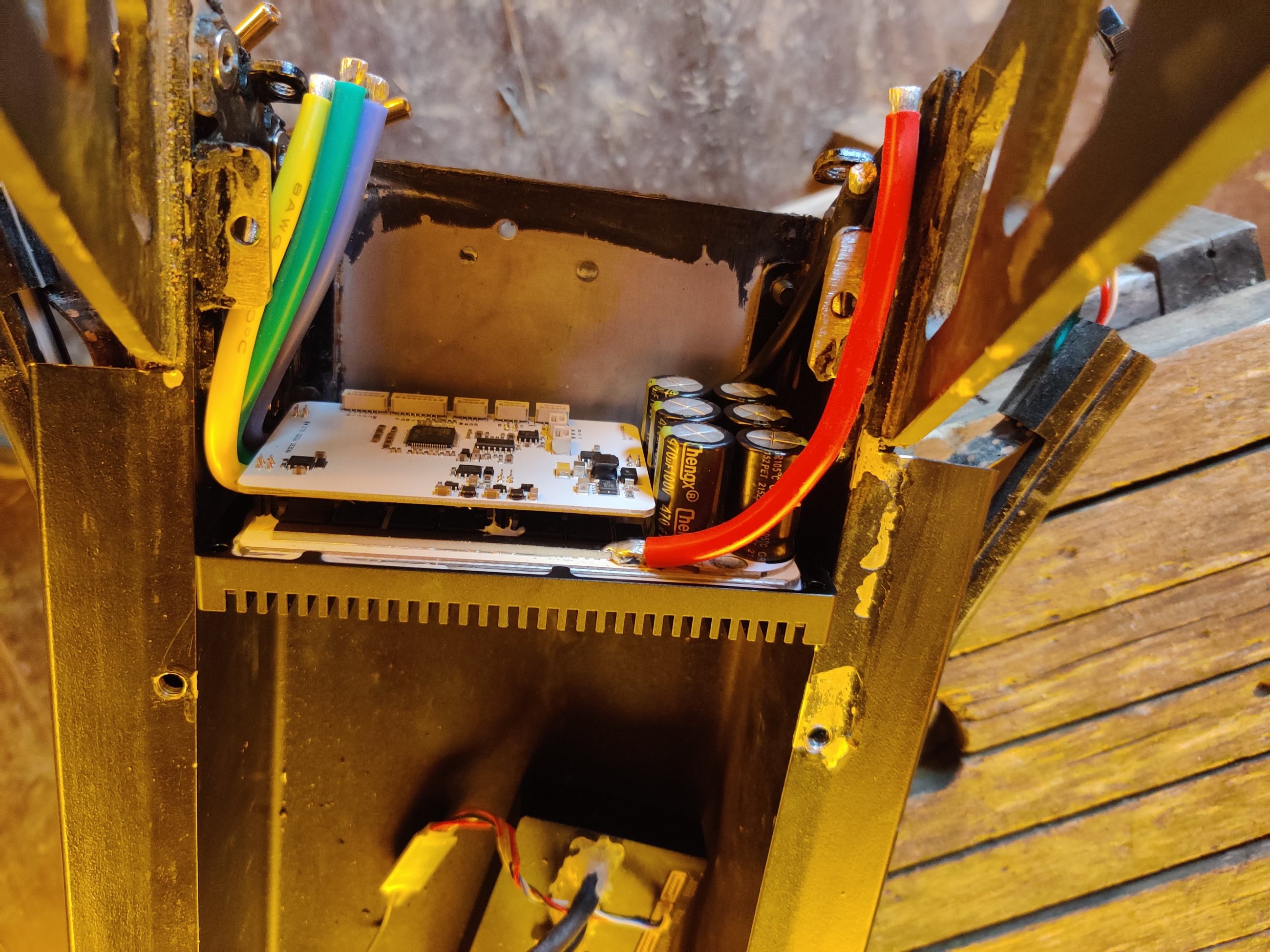 Было интересно узнать, как там поживают обмотки МК, и до скольких градусов они реально греются, особенно после лужения шунта. Поэтому, совместно с заменой фазных проводов, установил термодатчик в колесо...