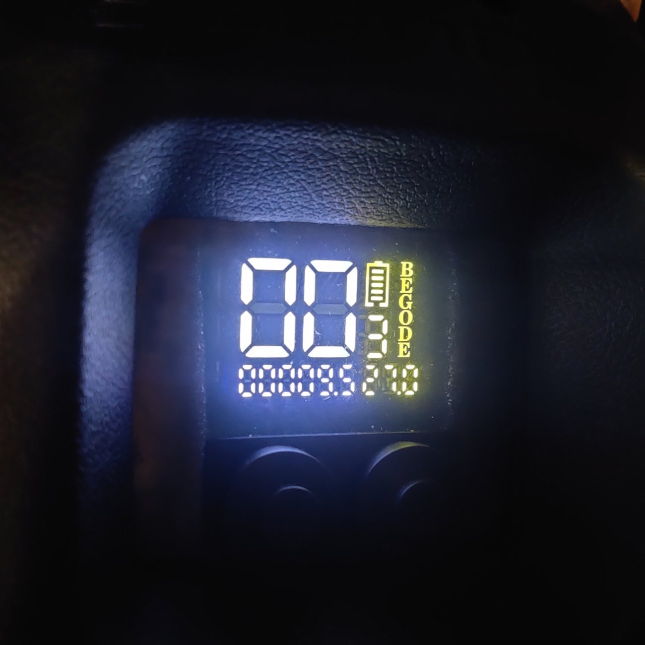 Как же можно купить новую игрушку и сразу не заняться её улучшениями? Вот и я говорю, что никак. Потому встречайте первый тюн и первый разбор. Разбор не полный, так крышку скинул, чтобы посмотреть, что там и как своими глазами. Хотел замерить напряжение на каждой батарее и тем самым проверить наличие разбаланса, но так как все провода аккуратно уложены, я не стал пока ничего трогать. Зато добавил желтенького в подсветку. Идея в том, чтобы разделить пробег и температуру контроллера, которые находятся рядом в одной строке, и если не знать, где что то там, пробег может показаться космическим. А с разделением по цвету всё как то сразу понятней становится. Делается очень просто: ищем цветной скотч и клеим на нужные циферки. У меня под рукой оказался каптон, его и наклеил. Получилось, как по мне, очень даже хорошо.