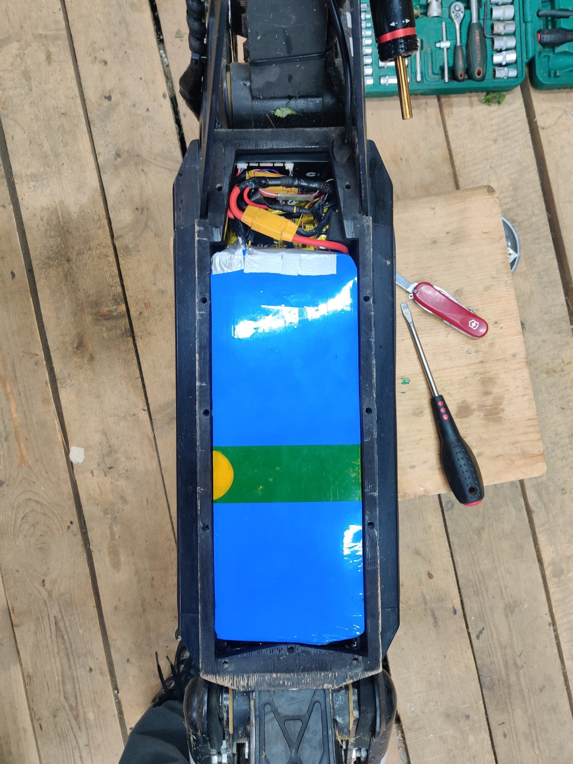 Разобрал деку и вскрыл аккумулятор спустя сезон эксплуатации. Внути деки и батареи все сухо и без неожиданностей. Батка тоже как только после сборки.
