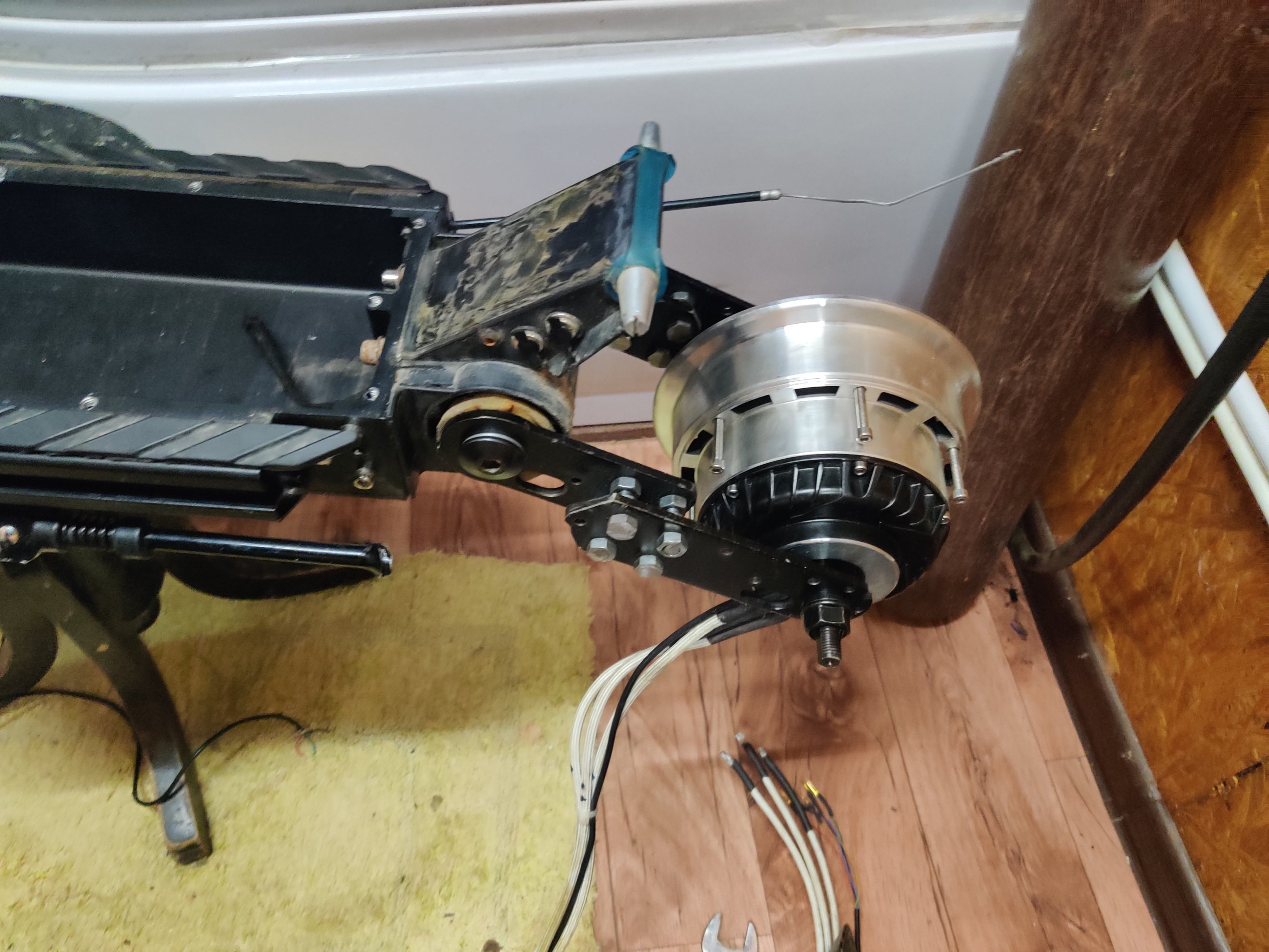Заменил фазные провода на 6мм2 (awg10), подшипники и сальники в обоих моторах. Так же установил термодатчик. Провода исподьзовал в PTFE оболочке и на фазные и на холлы. На фазные 10awg...