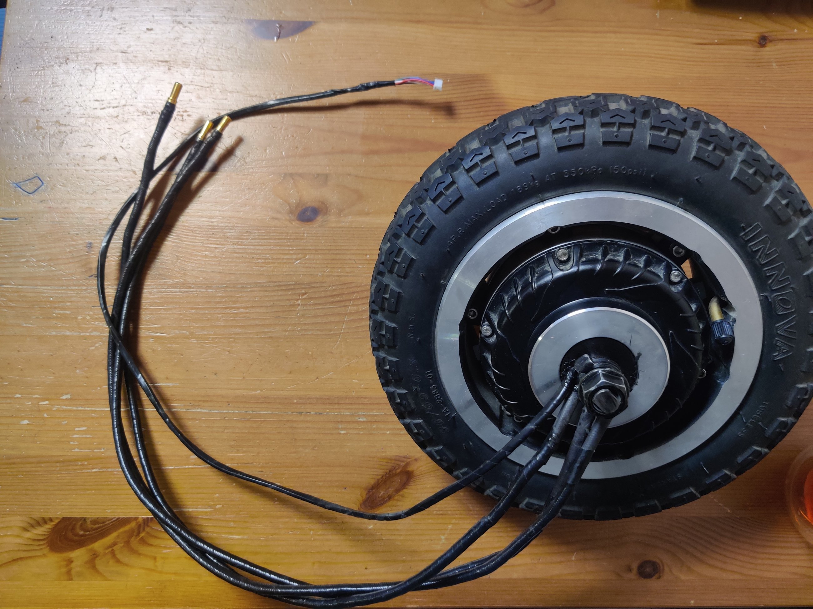 Как-то на даче появилось свободное время, и, как обычно, зачесались руки что-нибудь улучшить в самокатике. На этот раз под раздачу попало мотор-колесо. Решил на нем заменить оригинальные фазные провода 3мм2...