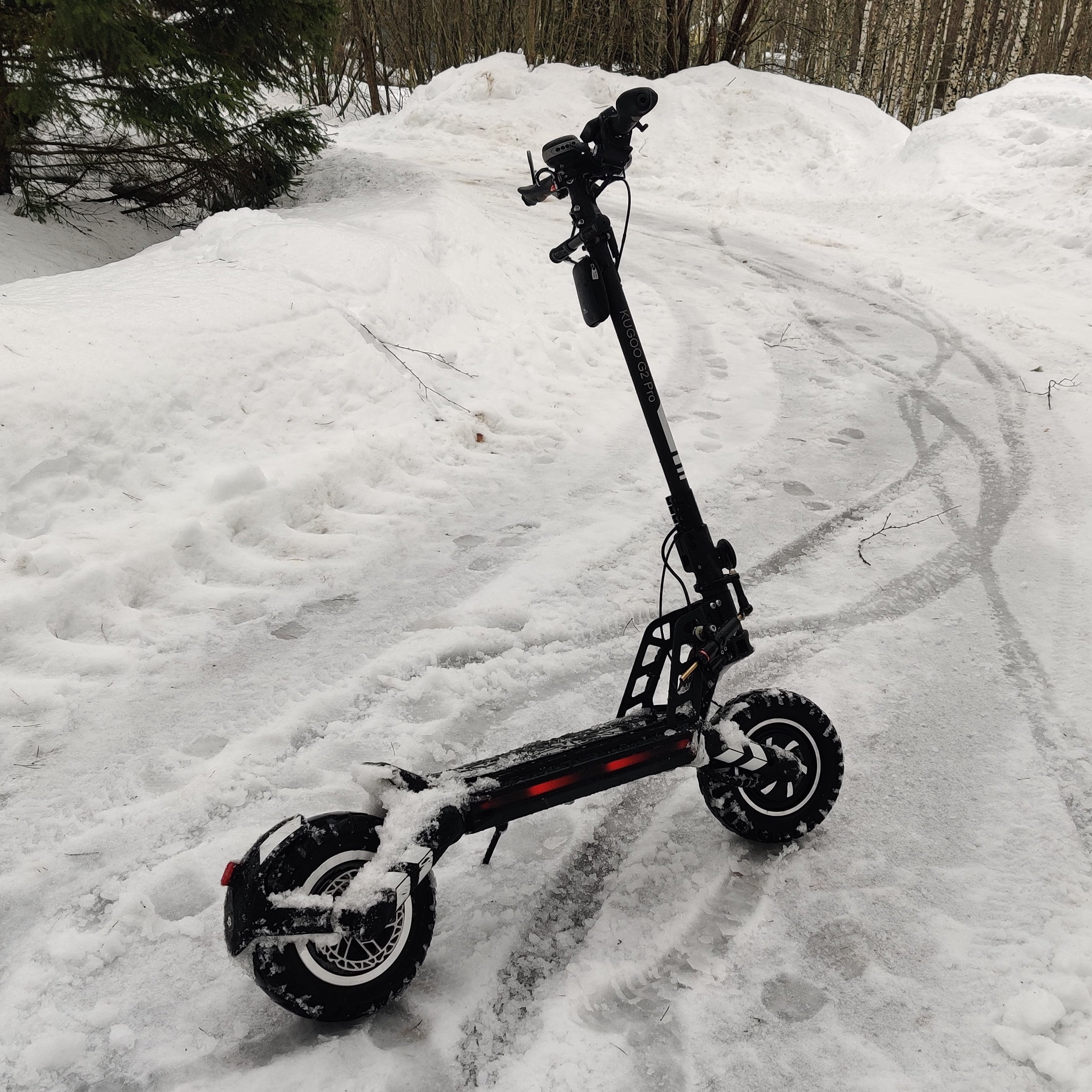 Выташил единственный раз за зиму самокат чуток покатать по снежку. Буксует обоими колесами даже с включенным трекшен контролем (антибуксом) на веске. Что в общем то совсем не удивительно с учетом...